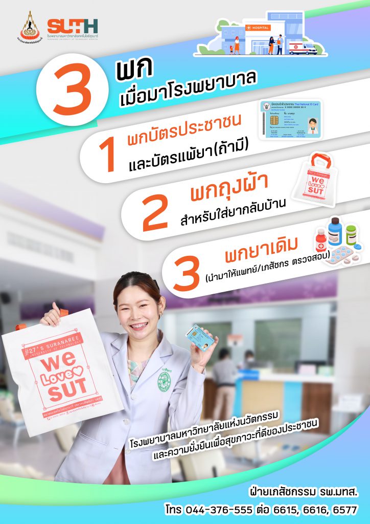 เค้าว่าดี…เราก็ว่าดี…… 3 พก!!!! มีอะไรบ้างไปดูกันเลยค๊าาาาา!!!! พก..ที่ 1 #พกบัตรประชาชน และบัตรแพ้ยา(ถ้ามี) พก..ที่ 2 #พกถุงผ้า สำหรับใส่ยากลับบ้าน พก..ที่ 3 #พกยาเดิม (นำมาให้แพทย์/เภสัช เพื่อตรวจสอบ)