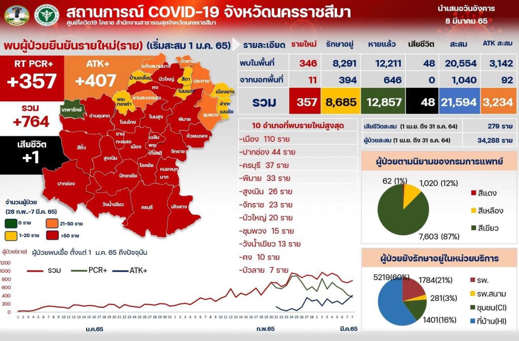 รายงานสถานการณ์โควิด-19 รพ.มทส. วันที่ 8 มีนาคม 2565