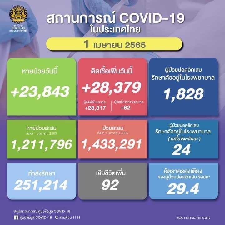 รายงานสถานการณ์โควิด-19 รพ.มทส. วันที่ 1 เมษายน 2565