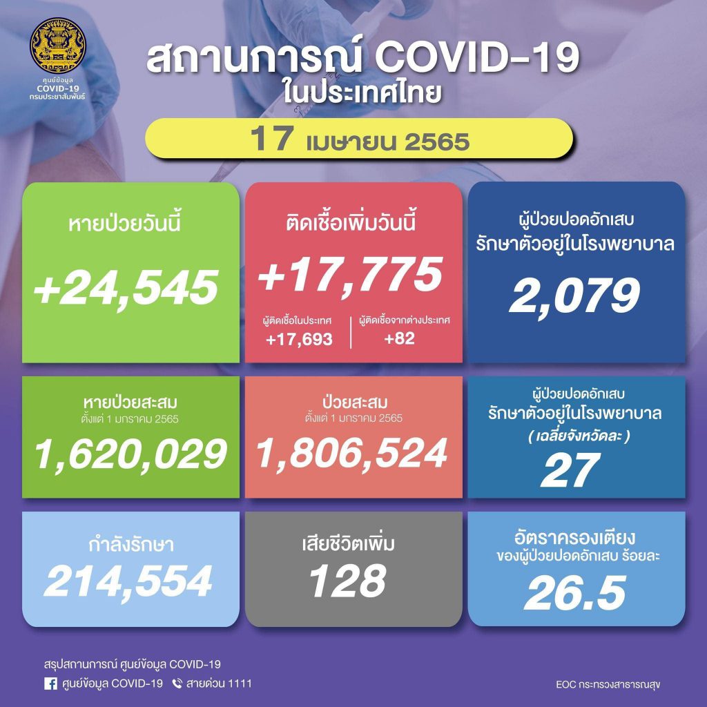 รายงานสถานการณ์โควิด-19 รพ.มทส. วันที่ 17 เมษายน 2565