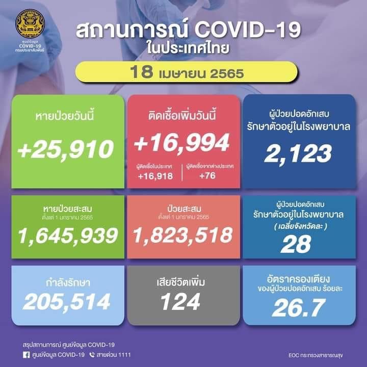 รายงานสถานการณ์โควิด-19 รพ.มทส. วันที่ 18 เมษายน 2565