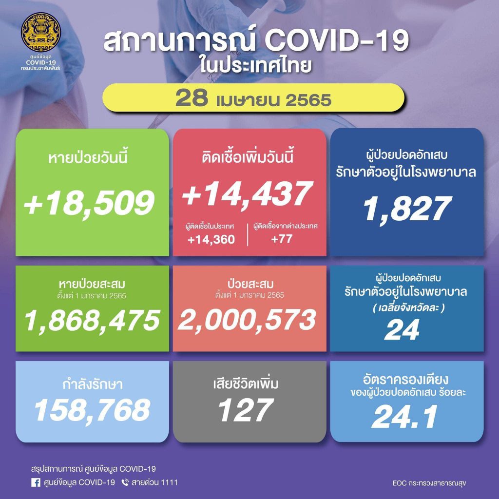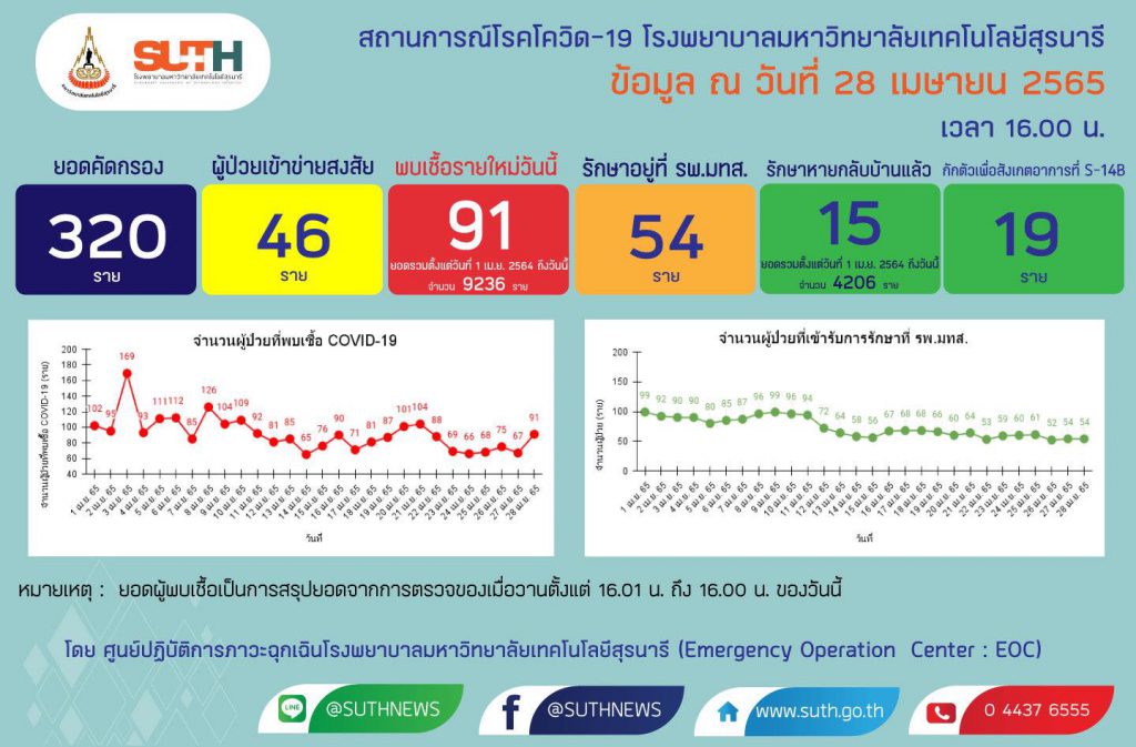รายงานสถานการณ์โควิด-19 รพ.มทส. วันที่ 28 เมษายน 2565