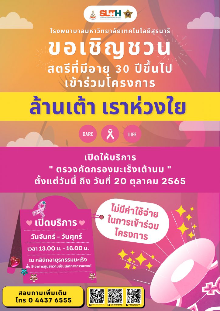ประชาสัมพันธ์ : ขอเชิญชวน สตรีที่มีอายุ 30 ปีขึ้นไป เข้าร่วมโครงการ “ล้านเต้า เราห่วงใย”