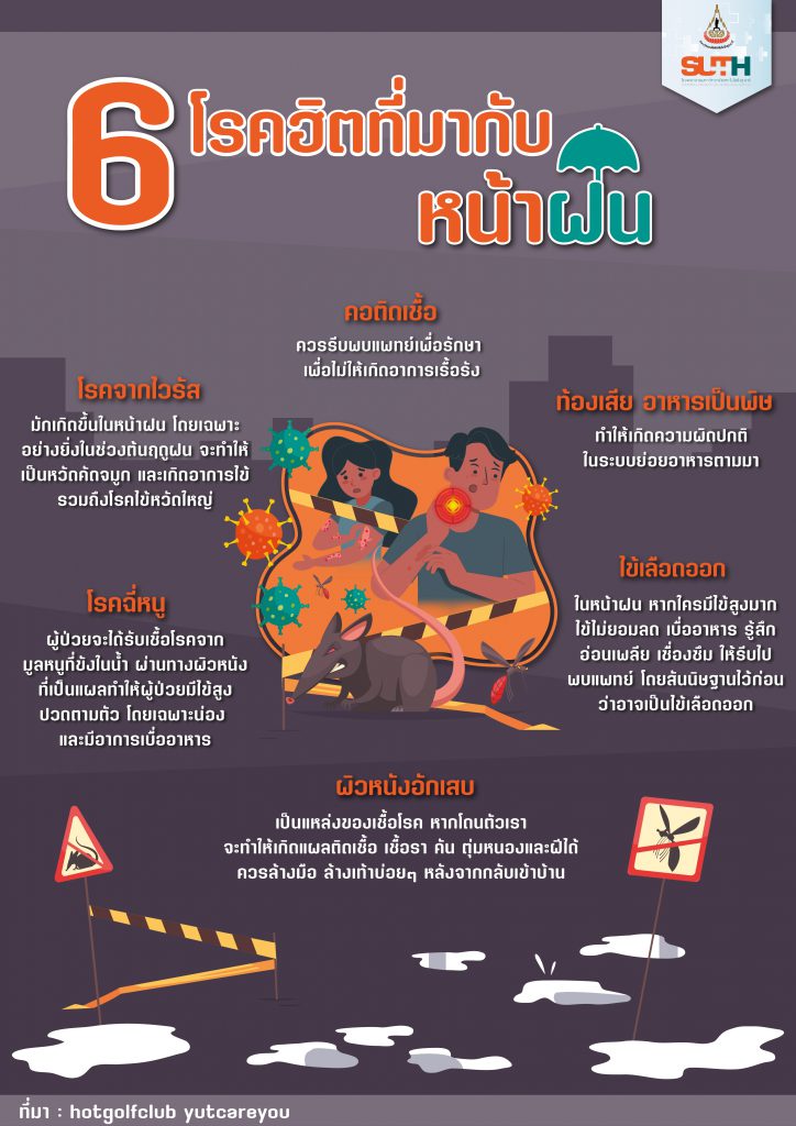 ประชาสัมพันธ์ : 6 โรคฮิตที่มากับหน้าฝน ด้วยความปรารถนาดีจาก รพ.มทส.