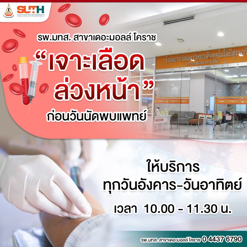 ประชาสัมพันธ์ : รพ.มทส. สาขาเดอะมอลล์โคราช “เจาะเลือดล่วงหน้า” ก่อนวันนัดพบแพทย์