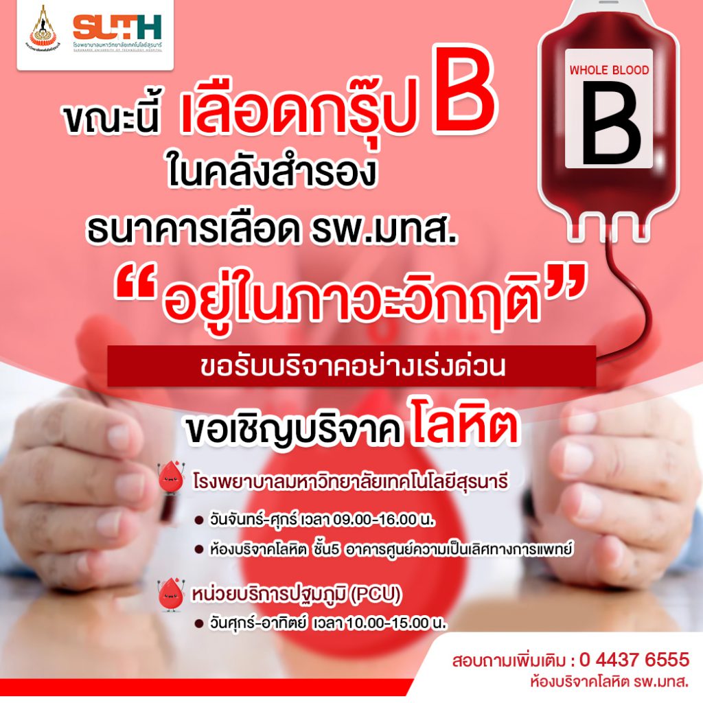 ประชาสัมพันธ์ : ขอเชิญชวนร่วม บริจาคโลหิต ต่อลมหายใจเพื่อนมนุษย์ เลือดกรุ๊ป B ขาดแคลน ในภาวะวิกฤติ