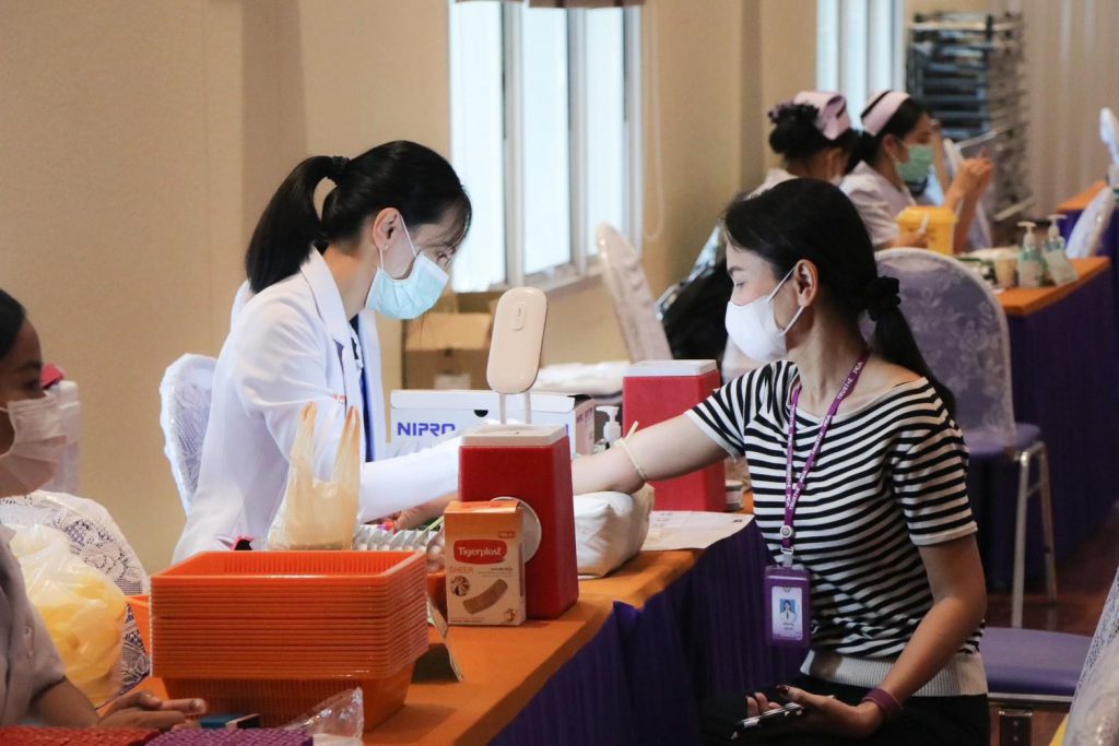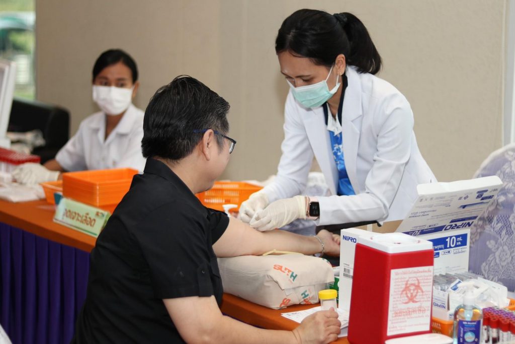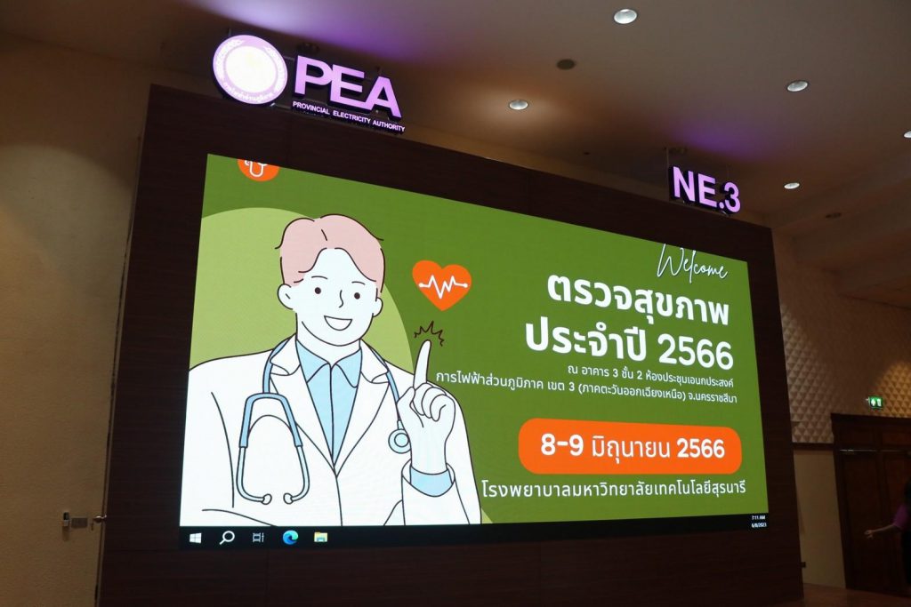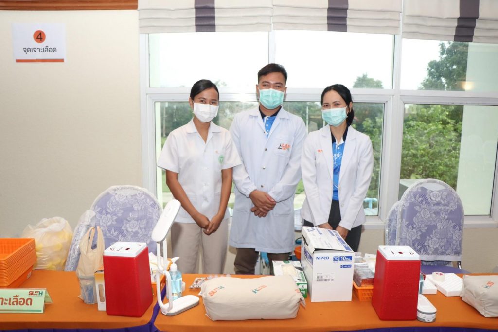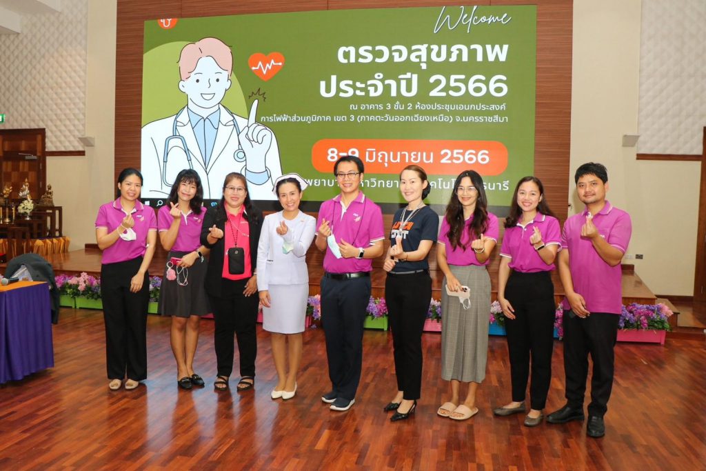 วันที่ 8-9 มิถุนายน 2565 เวลา 07.30-14.00 น. การไฟฟ้าส่วนภูมิภาคเขต 3 ภาคตะวันออกเฉียงเหนือ (กฟฉ.3) ร่วมกับ โรงพยาบาลมหาวิทยาลัยเทคโนโลยีสุรนารี นำทีมโดย แพทย์ประจำสาขาเวชปฏิบัติทั่วไป นายแพทย์ เอกภาพ ไพบูลย์ยิ่ง, พญ.ชนิตา เอื้อไพโรจน์ถาวร, พญ.อรนลิน ภาสพิมานบูรณ์ พร้อมด้วย พญ.กตัญชลี อำไพ และทีมพยาบาล ทีมสหวิชาชีพศูนย์ตรวจสุขภาพ และแผนกประชาสัมพันธ์การตลาด เวชนิทัศน์ ออกหน่วยให้บริการตรวจสุขภาพ ประจำปี 2566 ให้แก่พนักงานและลูกจ้าง กฟฉ.3 ณ ห้องประชุมอเนกประสงค์ อาคาร 3 ชั้น 2 กฟฉ.3 อนึ่งการตรวจสุขภาพประจำปีเป็นอีกหนึ่งในการดูแลสุขภาวะที่ดีของร่างกาย อีกทั้งยังเป็นเรื่องสำคัญที่ไม่ควรมองข้าม เพราะนอกจากจะเป็นการป้องกันเชิงรุกแล้ว ยังเป็นการหาความเสี่ยงของโรคที่อาจเกิดในอนาคต เมื่อรู้ความเสี่ยงแล้ว ก็สามารถปรับเปลี่ยนพฤติกรรมเพื่อลดความเสี่ยงนั้นลงได้ โรงพยาบาลมหาวิทยาลัยเทคโนโลยีสุรนารี “โรงพยาบาลมหาวิทยาลัยชั้นนำระดับภูมิภาคและเป็นที่พึ่งของสังคมอย่างยั่งยืน”