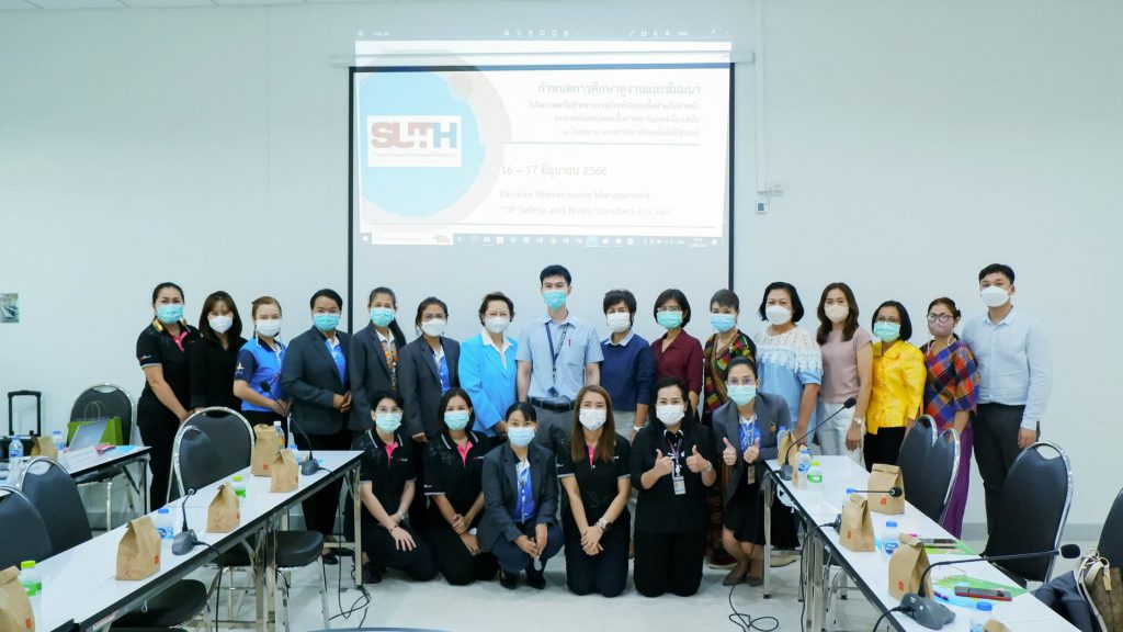 วันศุกร์ ที่ 16 มิถุนายน พ.ศ.2566 เวลา 08.00 – 16.00 น. โรงพยาบาลมหาวิทยาลัยเทคโนโลยีสุรนารี ร่วมกับบริษัท 3เอ็ม ประเทศไทย จำกัด ได้จัดกิจกรรมศึกษาดูงานและสัมมนา ในหัวข้อ “3P Safety and Rising Standard in CSSD” เนื่องจาก บริษัท 3เอ็ม ประเทศไทย จำกัด ได้เล็งเห็นความสำคัญในการลดการติดเชื้อในโรงพยาบาล การทำปราศจากเชื้ออุปกรณ์การแพทย์ที่ใช้กับผู้ป่วย ในงานจ่ายกลางเป็นกระบวนการที่มีความสำคัญอย่างยิ่งในทุกโรงพยาบาล เป็นศูนย์กลางที่รวบรวมชุดอุปกรณ์ทางการแพทย์หลังใช้งานที่มีการปนเปื้อนนำมาเข้าสู่กระบวนการทำลายเชื้อ และทำให้ปราศจากเชื้อก่อนนำไปใช้ดูแลผู้ป่วย ซึ่งเกี่ยวข้องกับความปลอดภัยของผู้ป่วย และผู้ปฏิบัติงานโดยตรง เพื่อเป็นการสร้างความปลอดภัยอย่างเป็นระบบทั้งในการดูแลผู้ป่วยและผู้รับบริการ จึงเกิดการจัดกิจกรรมร่วมกับโรงพยาบาลมหาวิทยาลัยเทคโนโลยีสุรนารีขึ้นมา และในการจัดกิจกรรมครั้งนี้ยังได้รับเกียรติจาก อ.นพ.พฤฒิชัย สุวิเทพ ประธานคณะกรรมการป้องกันและควบคุมการติดเชื้อ มาเป็นประธานและเป็นผู้กล่าวเปิดกิจกรรม ซึ่งมีผู้ร่วมงานที่เป็นกลุ่มหัวหน้างานจากโรงพยาบาลทั่วประเทศ จำนวนโดยประมาณ 28 ท่าน มาร่วมกิจกรรม เพื่อส่งเสริมให้เกิดการแลกเปลี่ยนประสบการณ์ระหว่างหัวหน้างานเวชภัณฑ์ปลอดเชื้อในเขตภาคตะวันออกเฉียงเหนือ และเพื่อให้ทุกโรงพยาบาลมีมาตรฐานที่เป็นไปในทิศทางเดียวกันทั่วประเทศ
