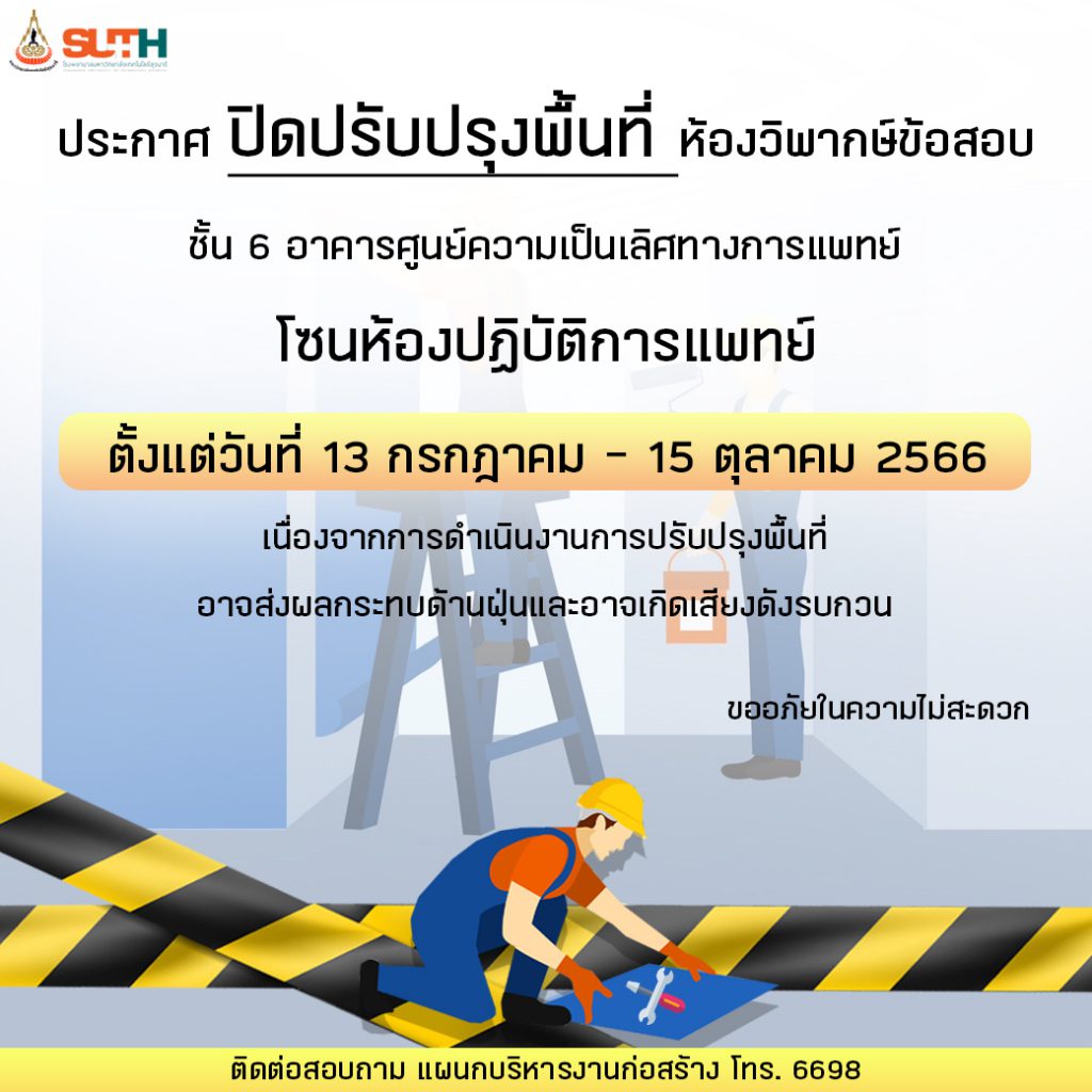 ประกาศ : ปิดปรับปรุงพื้นที่ ห้องวิพากษ์ข้อสอบ ชั้น 6 อาคารศูนย์ความเป็นเลิศทางการแพทย์
