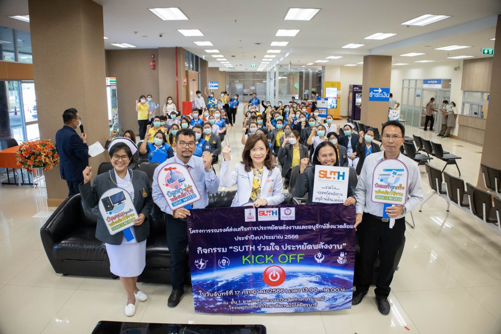 เมื่อวันที่ 17 กรกฎาคม 2566 เวลา 13.00-16.00 น. โรงพยาบาลมหาวิทยาลัยเทคโนโลยีสุรนารี ได้จัดกิจกรรม Kick Off โครงการรณรงค์ส่งเสริมการประหยัดพลังงาน และอนุรักษ์สิ่งแวดล้อม ประจำปี 2566 “SUTH ร่วมใจ ประหยัดพลังงาน” ประธานในพิธีโดย แพทย์หญิงเพิ่มศิริ เลอมานุวรรัตน์ ผู้อำนวยการโรงพยาบาลมหาวิทยาลัยเทคโนโลยีสุรนารี วัตถุประสงค์ในการจัดงานครั้งนี้เพื่อรณรงค์และปลุกจิตสำนึกให้กับบุคลากรภายในหน่วยงาน ให้มีการเปลี่ยนแปลงพฤติกรรมการใช้พลังงานในรูปแบบต่าง ๆ ส่งเสริมบทบาทและการมีส่วนร่วมของบุคลากรในหน่วยงานในการช่วยประหยัดพลังงาน ณ ชั้น 1 อาคารศูนย์ความเป็นเลิศทางการแพทย์ โรงพยาบาลมหาวิทยาลัยเทคโนโลยีสุรนารี