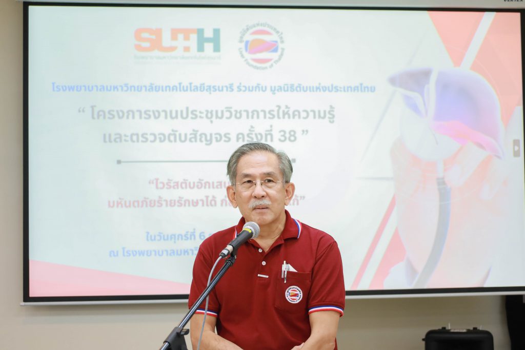 วันที่ 6 ตุลาคม 2566 เวลา 07.30–11.30 น. ณ ห้องเรียนรวมและห้องเธียร์เตอร์ ชั้น 6 อาคารศูนย์ความเป็นเลิศทางการแพทย์ โรงพยาบาลมหาวิทยาลัยเทคโนโลยีสุรนารี ร่วมกับ มูลนิธิตับแห่งประเทศไทย จัดโครงการให้ความรู้และตรวจตับสัญจร ครั้งที่ 38 ภายใต้หัวข้อ “ไวรัสตับอักเสบบีและซี มหันตภัยร้ายรักษาได้ ก่อนสายเกินแก้” ได้รับเกียรติจาก พลตรี นายแพทย์อนุชิต จูฑะพุทธิ ประธานมูลนิธิตับแห่งประเทศไทยเป็นผู้กล่าวรายงาน โดยแพทย์หญิงเพิ่มศิริ เลอมานุวรรัตน์ ผู้อำนวยการโรงพยาบาลมทส. เป็นประธานในการกล่าวต้อนรับและเปิดงาน การจัดโครงการในครั้งนี้มีวัตถุประสงค์ในการรณรงค์ป้องกันโรคอย่างต่อเนื่อง และให้ลงถึงชุมชนมากขึ้น โดยมีการให้ความรู้เกี่ยวกับโรคตับ พร้อมทั้งให้บริการตรวจคัดกรองหาเชื้อไวรัสตับอักเสบบีและไวรัสตับอักเสบซีแก่ประชาชนที่สนใจ รวมถึงเป็นการรณรงค์ให้ประชาชนตื่นตัว ดูแลรักษาสุขภาพตับ และเข้าถึงการรักษามากยิ่งขึ้นต่อไป