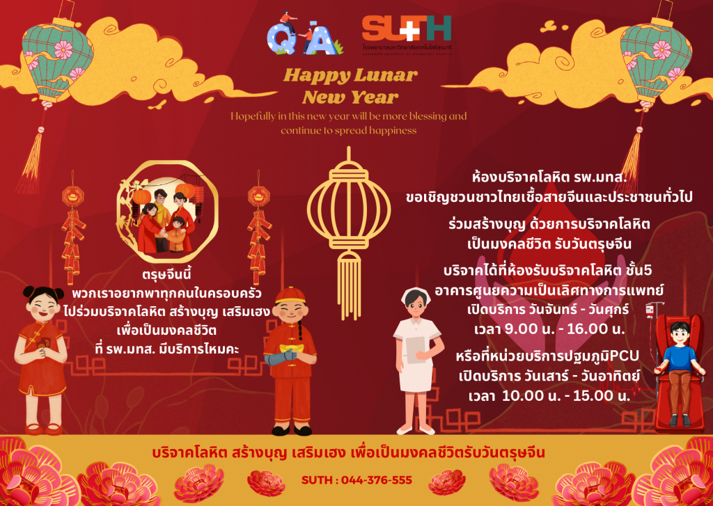 ตรุษจีนนี้ เปิดรับสิ่งใหม่ๆ เพิ่มความก้าวหน้าให้กับชีวิต เชิญชวนท่านที่มีสุขภาพแข็งแรง กายพร้อม ใจพร้อม ร่วมบริจาคโลหิต สร้างบุญสร้างกุศลใหญ่ให้แก่ตัวเอง เสริมความปัง เสริมบุญไปให้สุด