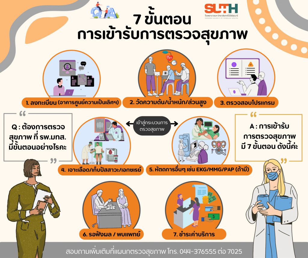 📢 ประชาสัมพันธ์ Q&A : 7 ขั้น ตอน การเข้ารับการตรวจสุขภาพ รพ.มทส.