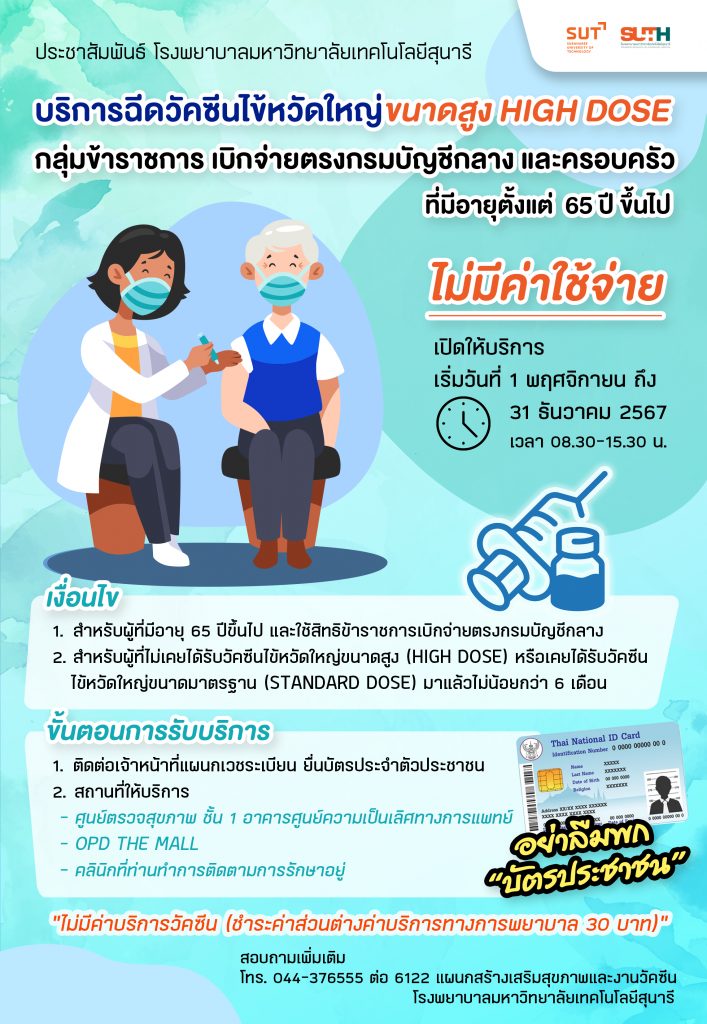 ðŸ“Ēāļ›āļĢāļ°āļŠāļēāļŠāļąāļĄāļžāļąāļ™āļ˜āđŒ : āđ‚āļĢāļ‡āļžāļĒāļēāļšāļēāļĨāļĄāļŦāļēāļ§āļīāļ—āļĒāļēāļĨāļąāļĒāđ€āļ—āļ„āđ‚āļ™āđ‚āļĨāļĒāļĩāļŠāļļāļ™āļēāļĢāļĩ āļšāļĢāļīāļāļēāļĢāļ‰āļĩāļ”āļ§āļąāļ„āļ‹āļĩāļ™āđ„āļ‚āđ‰āļŦāļ§āļąāļ”āđƒāļŦāļāđˆāļ‚āļ™āļēāļ”āļŠāļđāļ‡ HIGH DOSE āļāļĨāļļāđˆāļĄāļ‚āđ‰āļēāļĢāļēāļŠāļāļēāļĢ āđ€āļšāļīāļāļˆāđˆāļēāļĒāļ•āļĢāļ‡āļāļĢāļĄāļšāļąāļāļŠāļĩāļāļĨāļēāļ‡ āđāļĨāļ°āļ„āļĢāļ­āļšāļ„āļĢāļąāļ§ āļ—āļĩāđˆāļĄāļĩāļ­āļēāļĒāļļāļ•āļąāđ‰āļ‡āđāļ•āđˆ 65 āļ›āļĩ āļ‚āļķāđ‰āļ™āđ„āļ›