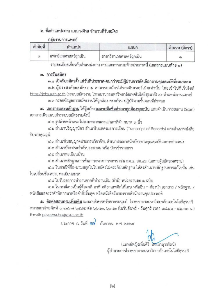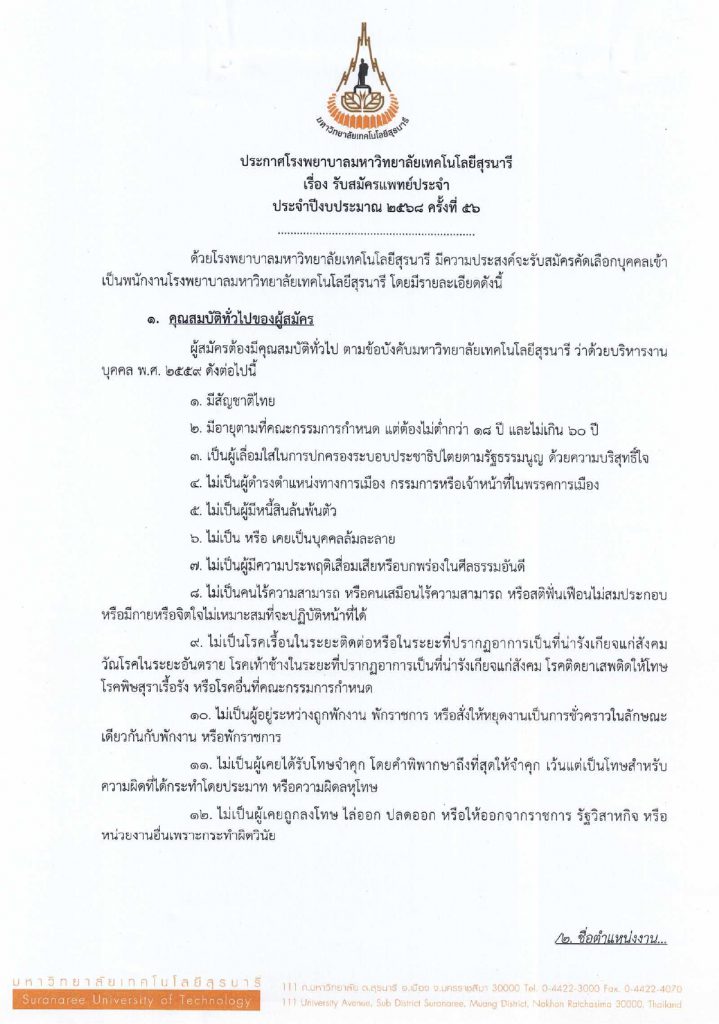 ประกาศโรงพยาบาลมหาวิทยาลัยเทคโนโลยีสุรนารี เรื่อง รายชื่อผู้มีสิทธิ์เข้าสอบคัดเลือกและสอบสัมภาษณ์ ตำแหน่ง ที่ปรึกษางานระดมทุนกองทุนโรงพยาบาลมหาวิทยาลัยเทคโนโลยีสุรนารี ครั้งที่ 55/2568📢 ประชาสัมพันธ์ : รพ.มทส. พร้อมเปิดให้บริการ คลินิกพิเศษ นอกเวลาราชการ (SMC)