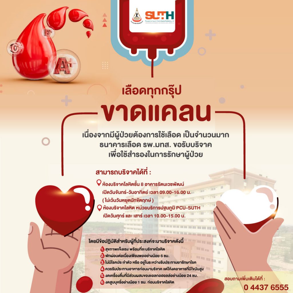 📢 ประชาสัมพันธ์ : รพ.มทส. ขอเชิญร่วมบริจาคโลหิต