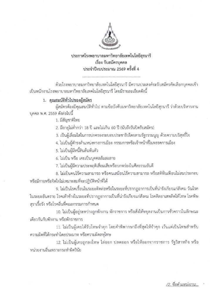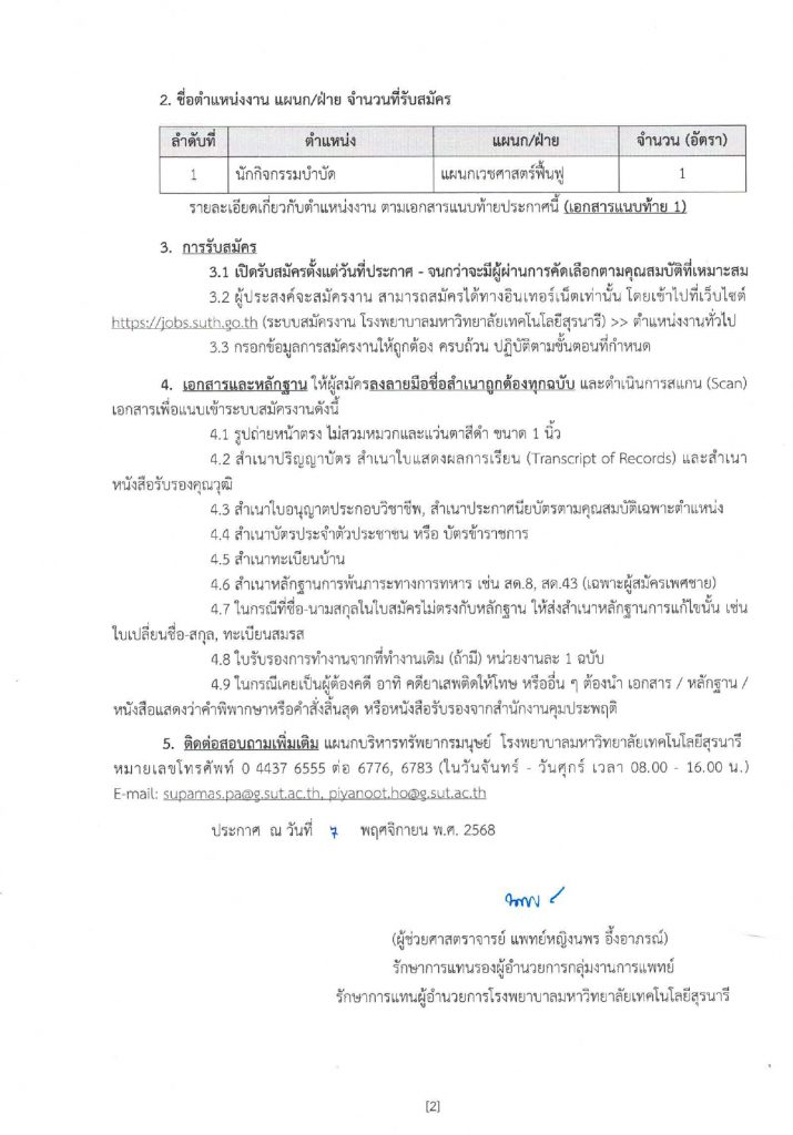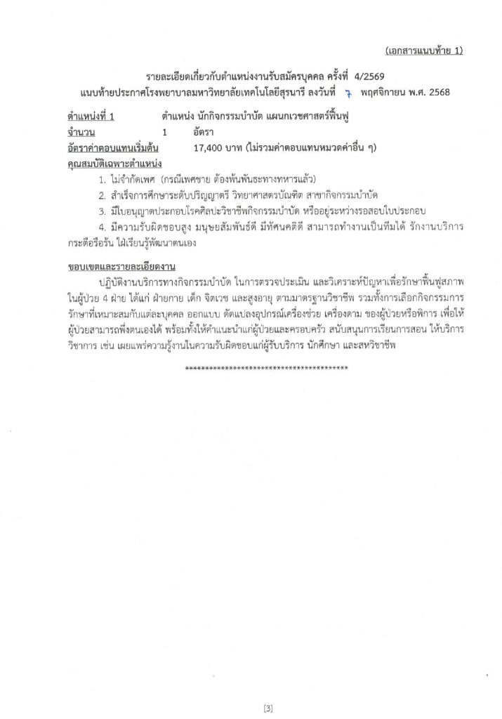 ประกาศรับสมัคร ประจำปีงบประมาณ 2569 ครั้งที่ 4 ตำแหน่ง นักกิจกรรมบำบัด แผนกเวชศาสตร์ฟื้นฟู จำนวน 1 อัตรา