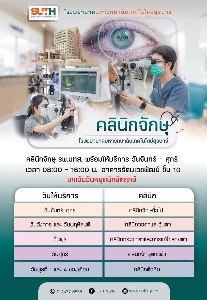 🧐👁️คลินิกจักษุ โรงพยาบาลมหาวิทยาลัยเทคโนโลยีสุรนารี 🧡💚 🗓️พร้อมให้บริการ วันจันทร์-ศุกร์ 🕗 เวลา 08:00-16:00 น. 🏥 อาคารรัตนเวชพัฒน์ ชั้น 10 โรงพยาบาลมหาวิทยาลัยเทคโนโลยีสุรนารี ❌ยกเว้นวันหยุดนักขัตฤกษ์❌