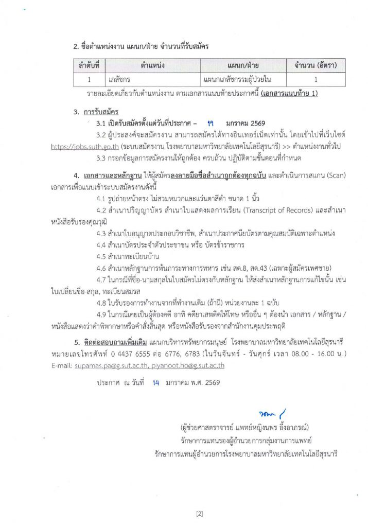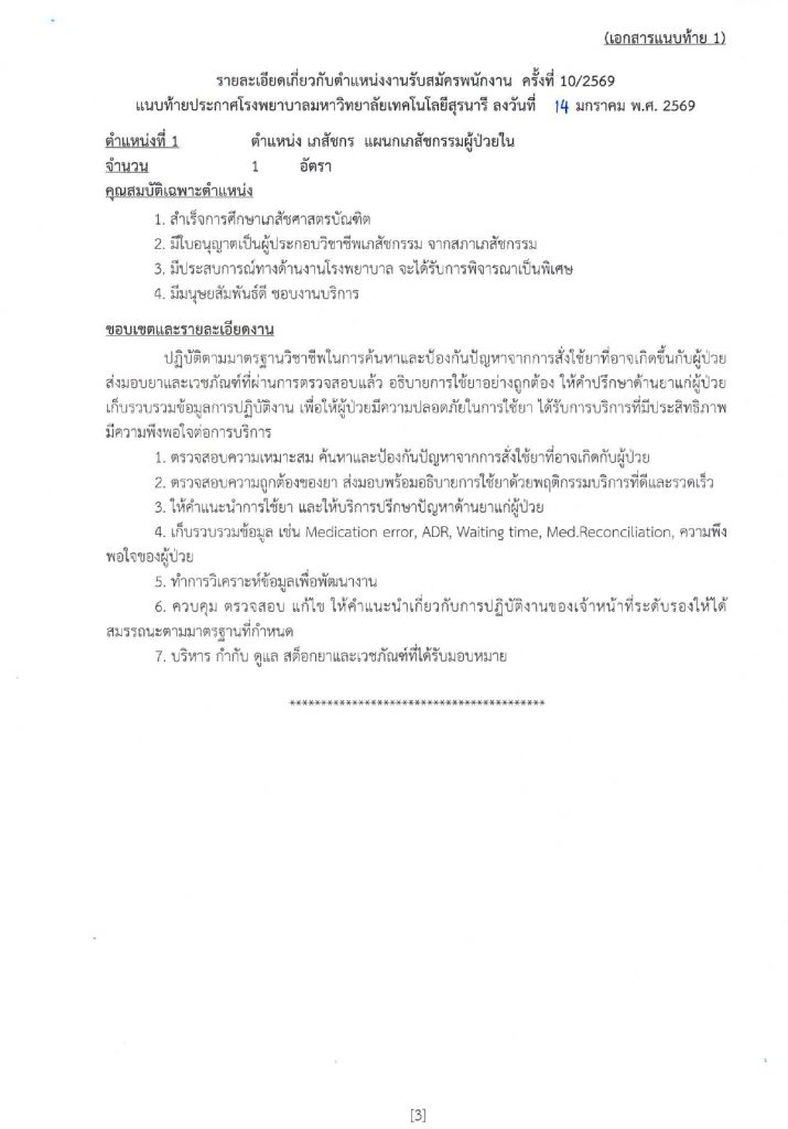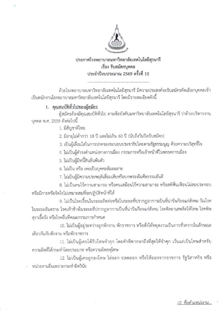 ประกาศโรงพยาบาลมหาวิทยาลัยเทคโนโลยีสุรนารี เรื่อง รับสมัครบุคคล ประจำปีงบประมาณ 2569 ครั้งที่ 10