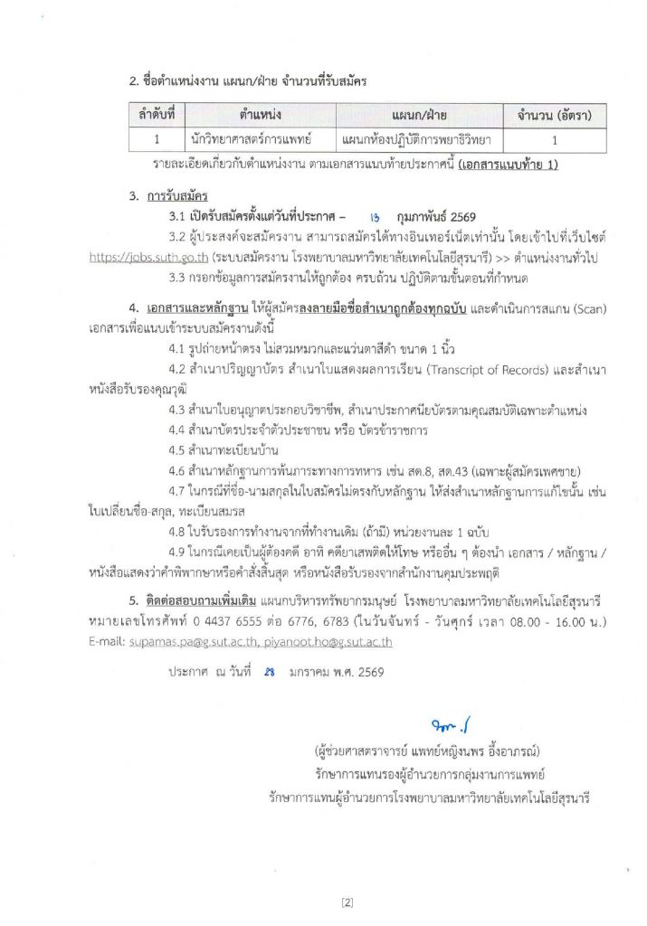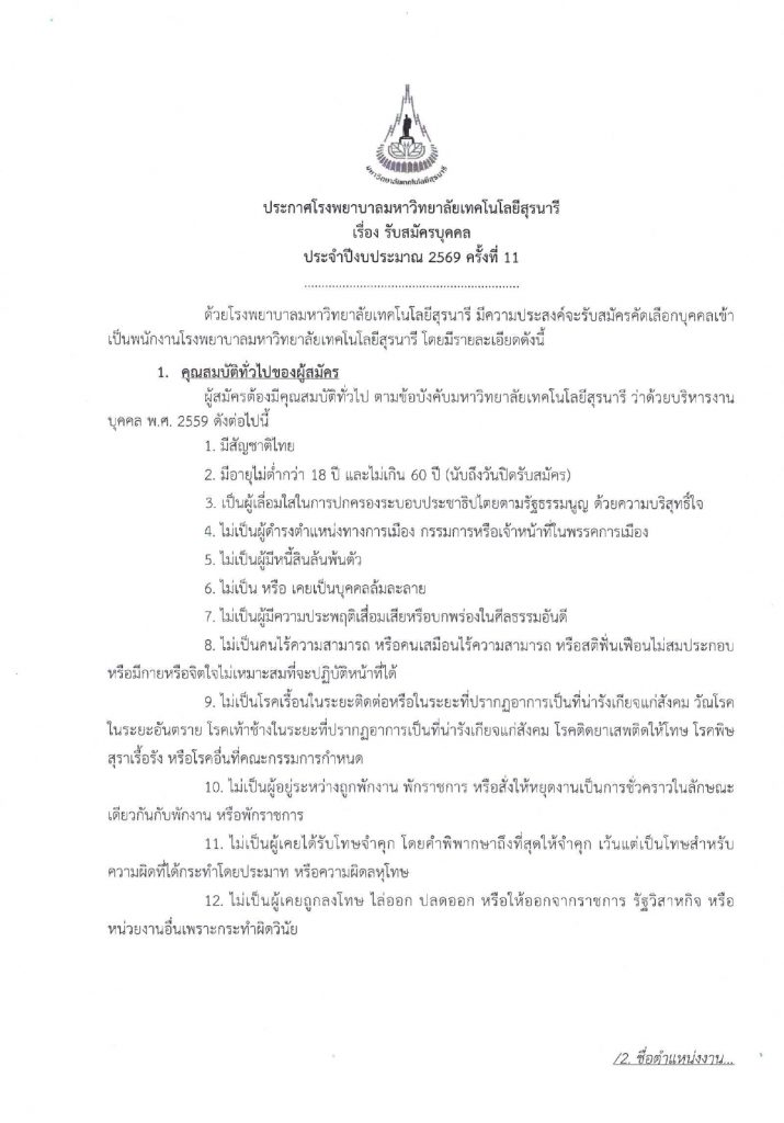 ประกาศโรงพยาบาลมหาวิทยาลัยเทคโนโลยีสุรนารี เรื่อง รับสมัครบุคคล ประจำปีงบประมาณ 2569 ครั้งที่ 11