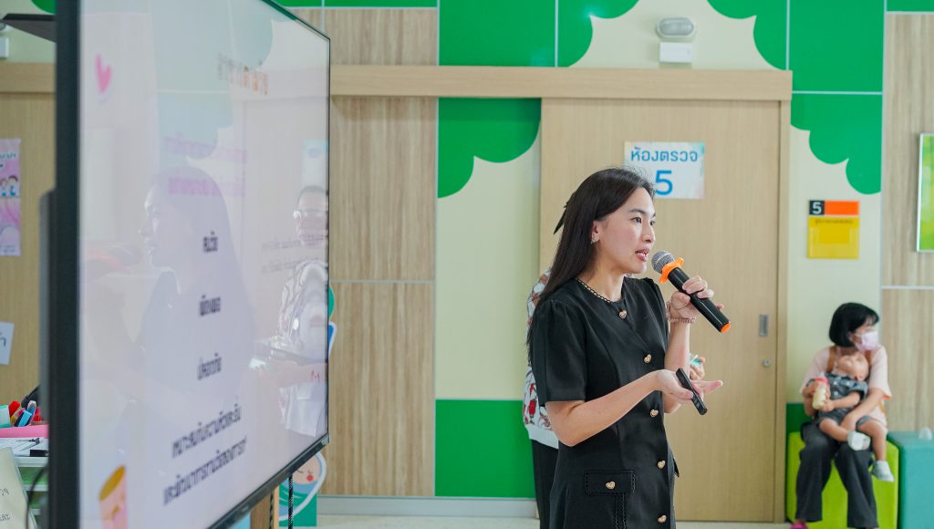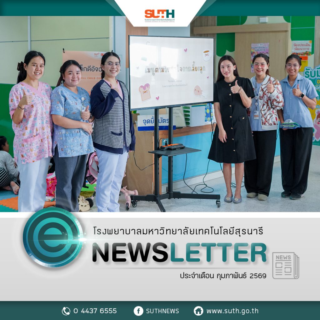 วันที่ 18 กุมภาพันธ์ 2569 แผนกกุมารเวชศาตร์ โรงพยาบาลมหาวิทยาลัยเทคโนโลยีสุรนารี ได้จัดกิจกรรมโรงเรียนพ่อแม่ ตามนโยบายกระทรวงสาธารณสุข นำโดย อ.พญ.พิราภรณ์ พูตระกูล กุมารแพทย์หน่วยโลหิตวิทยาและมะเร็งในเด็ก ได้บรรยายให้ความรู้ในหัวข้อ “เมนูตามวัยหัวใจการเลี้ยงลูก” สำหรับลูกน้อย อาหารที่มีคุณค่าทางโภชนาการเหมาะสมตามวัย จะส่งเสริมทําให้เด็กมีการเจริญเติบโตตามวัยได้ หลักการให้อาหารตามวัยอย่างเหมาะสม ต้องสมวัย มีปริมาณที่เพียงพอ และมีความปลอดภัยกับลูกน้อย คุณพ่อคุณแม่จึงต้องใส่ใจในเรื่องเมนูอาหารของลูกน้อยในแต่ละมื้อเป็นอย่างมาก เน้นการทำใหม่ ปรุงสุก และความสะอาดเป็นหลัก เพื่อสุขภาพอนามัยที่ดีของลูกน้อย โดยกิจกรรมให้สุขศึกษาจะจัดในวันพุธของสัปดาห์ที่ 1 และสัปดาห์ที่ 3 ของทุกเดือน เวลา 12:45-13:30 น. ณ แผนกกุมารเวชกรรม (คลินิกเด็กดี) ชั้น 3 อาคารรัตนเวชพัฒน์ โรงพยาบาลมหาวิทยาลัยเทคโนโลยีสุรนารี