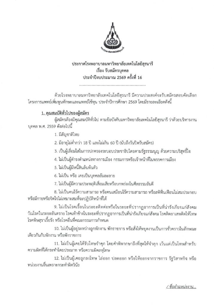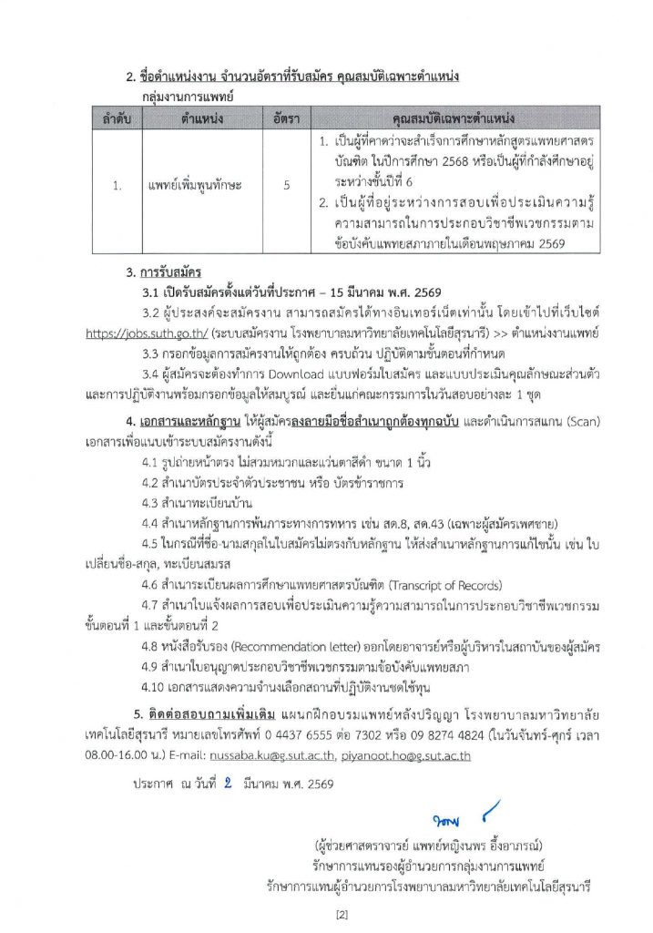 ประกาศ เรื่องรับสมัครบุคคล ครั้งที่16/2569 ตำแหน่ง แพทย์เพิ่มพูนทักษะ จำนวน 5 อัตรา