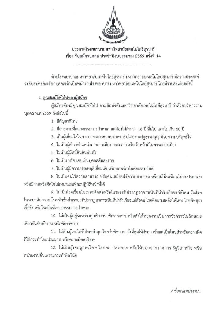 ประกาศ เรื่องรับสมัครบุคคล ประจำปีงบประมาณ 2569 ครั้งที่ 14